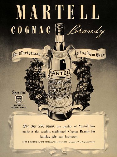 This is an original 1937 black and white print ad for Martell Cognac Brandy. Product Features Product Type: Original Print Ad; Grayscale Grade: Near Mint / Very Fine Dimensions: Approximately 10.5 x 14 inches; 27 x 36 cm Authentication: Serial-Numbered Certificate of Authenticity w/ Full Provenance Packaged in custom sleeve w/ archival black board (great