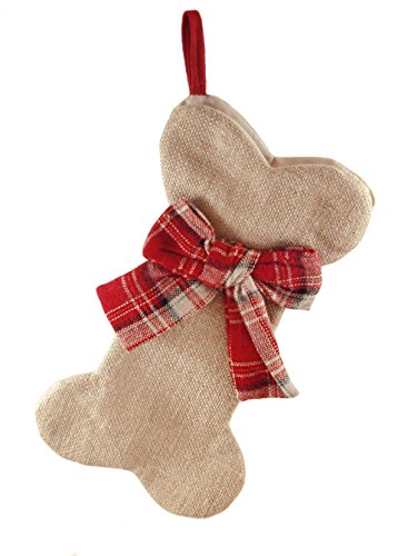 The perfect Christmas stocking for your dog! This unique stocking has a dog bone design outline that is made of burlap with a red plaid bow & measures 14″L. What an awesome gift for any dog lover! Product Features One Hanging Stocking Measures 14″L Made of burlap, with red plaid bow The attached hanging loop