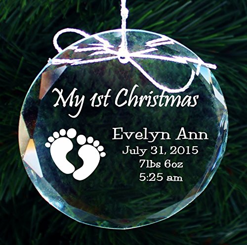 We designed this crystal ornament just for our daughter’s first Christmas. The design was such a hit that we decided to add it to our 2015 ornament collection. Your personalized ornament will be laser engraved with your little one’s custom details, into flawless crystal. We can add any text to the ornament, you aren’t limited