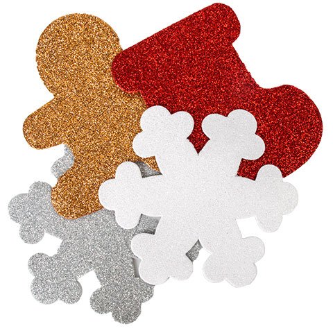 • 48 Piece Foam Christmas Shapes- Snowflakes, Gingerbread, and Stockings
