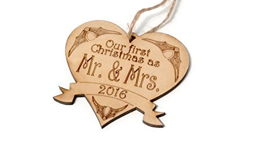 Commemorate a special year with the 2016 Our First Christmas as Mr. & Mrs. holiday ornament. It would make a wonderful stocking stuffer or gift topper, too! The ornament measures 4 inches (10.2 cm) wide by just under 3.75 inches (9.52 cm) high. Made from 3/16-inch thick birch, the ornament is hand-sanded and hand-rubbed with [More]