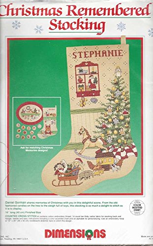THIS IS A VINTAGE NEW COUNTED CROSS STITCH. KIT IS SEALED. HAS NEVER BEEN OPENED.DESIGNED BY DANIEL GORMAN, THE KIT CONTAINS EMBROIDERY FLOSS, 14 COUNT TAN AIDA, CALICO FABRIC FOR STOCKING BACK AND HANGER, NEEDLE, EASY INSTRUCTIONS AND AN ALPHABET CHART FOR PERSONALIZING. FINISHED SIZE OF STOCKING IS 16″. LONG Product Features CHRISTMAS STOCKING COUNTED