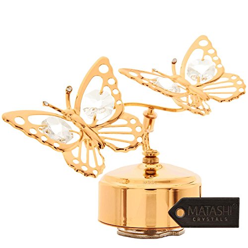 • 24K Gold Plated Music Box with Crystal Studded Double Butterfly Figurine by Matashi