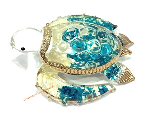 This Sea Turtle Doll House Miniature created by “We are Handmade” is the new design of jewelry collections, “The Beach Theme” , of Year 2016 which has the best quality & special design with handmade & handpainted work. The glass sea turtle has filled the “Renewable Sand” (For environment safety) and painted in the sky