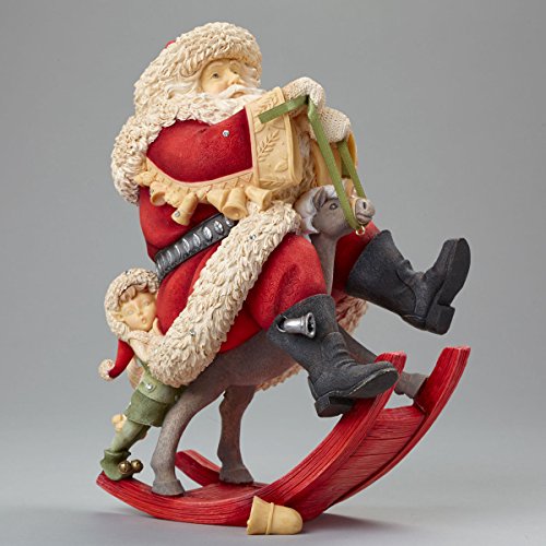 Making toys is a lot of fun. Santa is trying out this toy rocking reindeer with the help of his elf friend. Product Features Artist designed; globally recognized for quality Meticulously hand crafted Enesco-for over 50 years