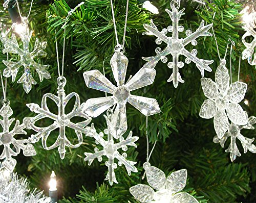 Set of 12 clear glass ornaments assorted in 6 different snowflake patterns. Each has a silver cord for hanging. Boxed for easy storage, each snowflake measures 2 1/2″D. Product Features Set of 12 iridescent glass snowflake ornaments assorted in 6 different snowflake patterns. Give them as a gift to a new homeowner, hostess gift, new