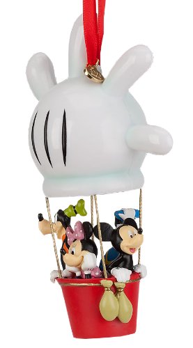 isney Store Mickey Mouse Clubhouse ornament features Mickey, Minnie, Donald & Goofy! Product Features Authentic and exclusive Disney Store ornament Fully sculptured, hand-painted figures figures ride in balloon Satin ribbon for hanging, or can be freestanding for desk or tree display 2015 Disney Store logo charm Inspired by Disney Store artist sketchbooks design