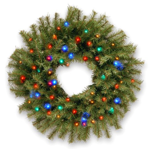 This Norwood Fir wreath is pre-lit with 50 Multicolor Low-Voltage LED lights that are energy-efficient, long lasting and cool to the touch. This holiday decoration will be at home displayed on windows, walls or doors. Product Features 24″ diameter, 250 branch tips Pre-strung with 50 UL listed multicolor low voltage LED lights, plugs into electrical outlet