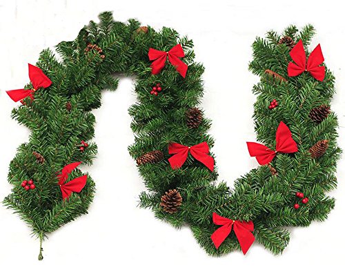 Introductions: 1.Meterial: PVC plastic 2.Size:270cm / 106.3″ 3.Color: green Package included: 1 x 270cm Christmas Garland For Christmas Holiday Home Decoration Product Features Christmas Decorations measures: 106′ Perfect for decorating Christmas trees, doorways, windows, staircases, lamp posts, mailboxes, or ceiling decoration.