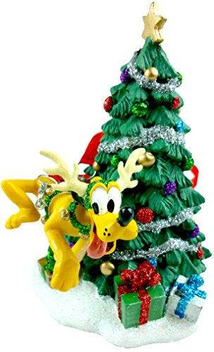 Disney Pluto Christmas and Tree with Gift Holiday Figurine Ornament. Pluto can be found among the pile of gifts on this detailed dimensional sculpture that will add sparkle to your wintry holidays. Product Features Disney Pluto Christmas and Tree with Gift Holiday Figurine Ornament Fully sculptured figures Stands By Itself Glitter detailing Disney Original Product