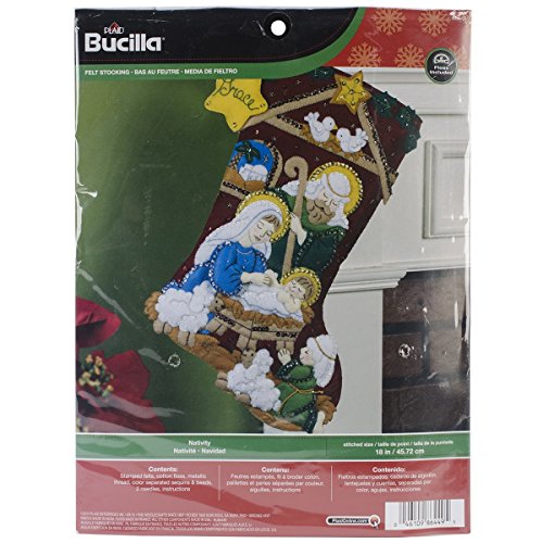 Bucilla 18-Inch Christmas Stocking Felt Applique Kit Bucilla felt applique stocking kit. Kit includes: stamped felt embroidery floss beads needles trilingual instructions stocking is 18-inch. Product Features Detailed designs and generous embellishments Easy to follow instructions Everything you will need is included in your kit You can personalize for a one of a kind gift