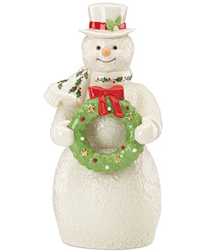 Lenox porcelain “Decking the Halls Snowman” Figurine. Macy’s exclusive, 2015 edition Product Features Add a touch of fun to your holiday decor with this 2015 Snowman figurine from Lenox This figure depicts a snowman holding a holiday wreath with his signature top hat and scarf Figurine measures 7 inches tall