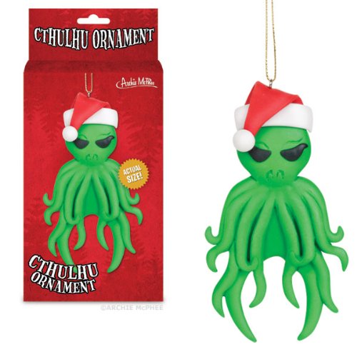 Instead of “Joy to the World,” the Cthulhu Ornament says, “Destroy the World.” The representation of chaos and destruction from HP Lovecraft’s stories is 4-3/4″ (12.1 cm) tall, made of plasticized clay-dough and done up with a delightful festive Santa hat. Putting Cthulhu on your tree balances out all those happy ornaments you get from [More]