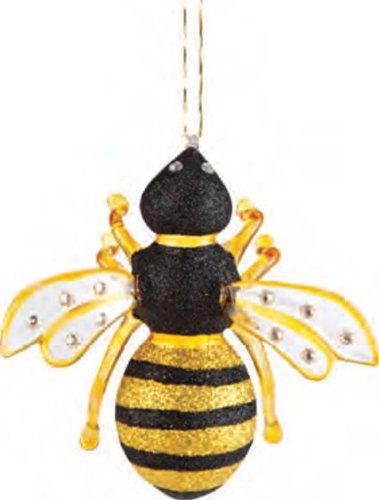 • Gallerie II Glass Bumble Bee Hives Nest Yellow Black Fuzzy Nectar Flowers Christmas Tree Ornament