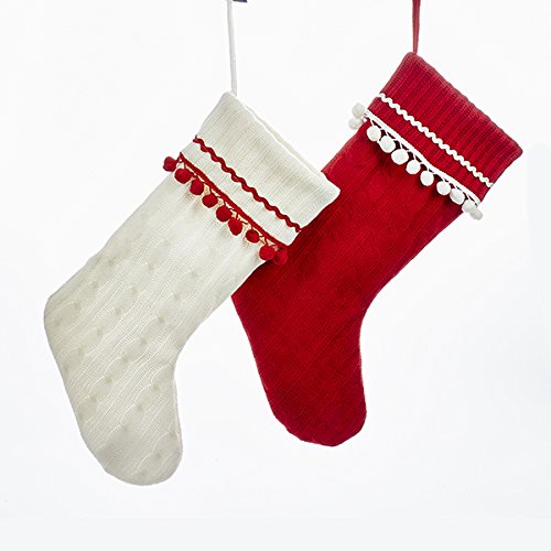 19 Inch 2 Assorted Red and White Knit Christmas Stockings Made In China Product Features Christmas stockings in red and white. Adorned with fluffy balls across the top rim Its big size can fit lots of presents. Anyone will love these stockings! Measures approximately: 19 inches Long