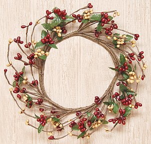 • Burgundy & Old Gold Pip Berry Ring Mini Wreath Country Primitive Floral Décor