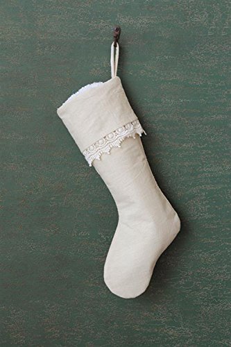 • 21″ Cream Color Cotton & Linen Stocking with Lace Trim