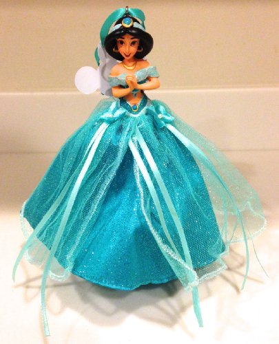 Disney Theme Parks Princess Jasmine Gown Christmas Ornament Fully sculptured figural ornament from the waist up Ribbon for hanging Glitter detailing Resin and fabric 6” tall New Product Features Fully sculptured figural ornament from the waist up Ribbon for hanging Glitter detailing Resin and fabric 6″ tall