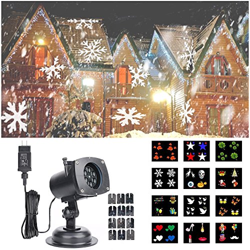 • Hosyo Motion Landscape Lights Projector LED Spotlights120V Waterproof With 12pcs Switchable Pattern Lens For Christmas Holiday Home Decoration Wall Motion Decoration