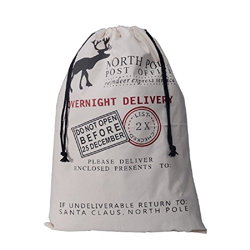 Christmas Canvas Santa Sack Item Number: santa bag Material: cotton canvas Size: 50*70cm Weight: 270g Product Features Measures:27.5″*19.5( 70cm x 50 cm) weight: 9 OZ max loading 110 LB, holds all kind of Christmas gifts Massive Burlap Santa sack for your Christmas presents hessian Santa sack is perfect for even the biggest of kids Huge