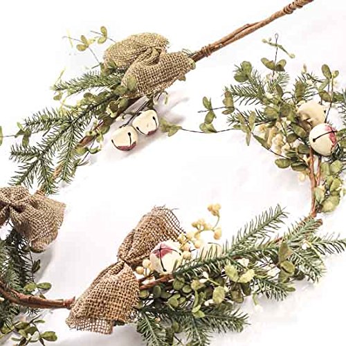 Decorative Eggnog White Berry and Mixed Green Christmas Garland with Burlap Bow and Dipped Jinglebells Product Features Decorative Eggnog White Berry and Mixed Green Christmas Garland with Burlap Bow and Dipped Jinglebells Garland measures: 58″ Long approximately Hang around Doorways, on Mantles, Wrap around grapevine trees Use for Holiday decor, in Home Decor, for Parties